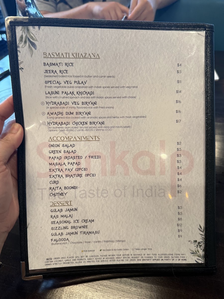 For those looking to share their love for Indian cuisine, Sankalp also encourages guests to engage with the staff for personalized recommendations, ensuring that every visit is tailored to your culinary preferences. Whether you are in the mood for street food style dishes like Pani Puri or a comforting Masala Chai, you are sure to find your cravings satisfied.